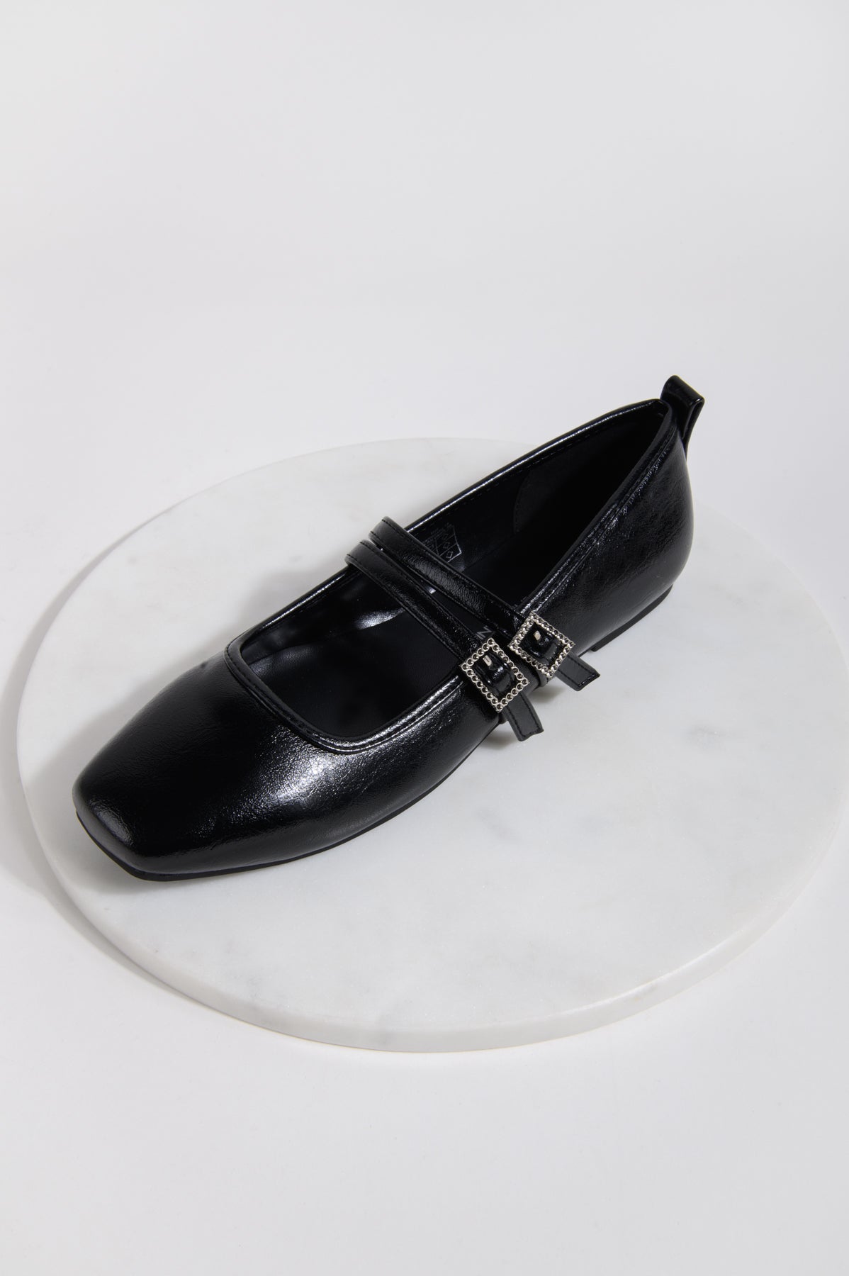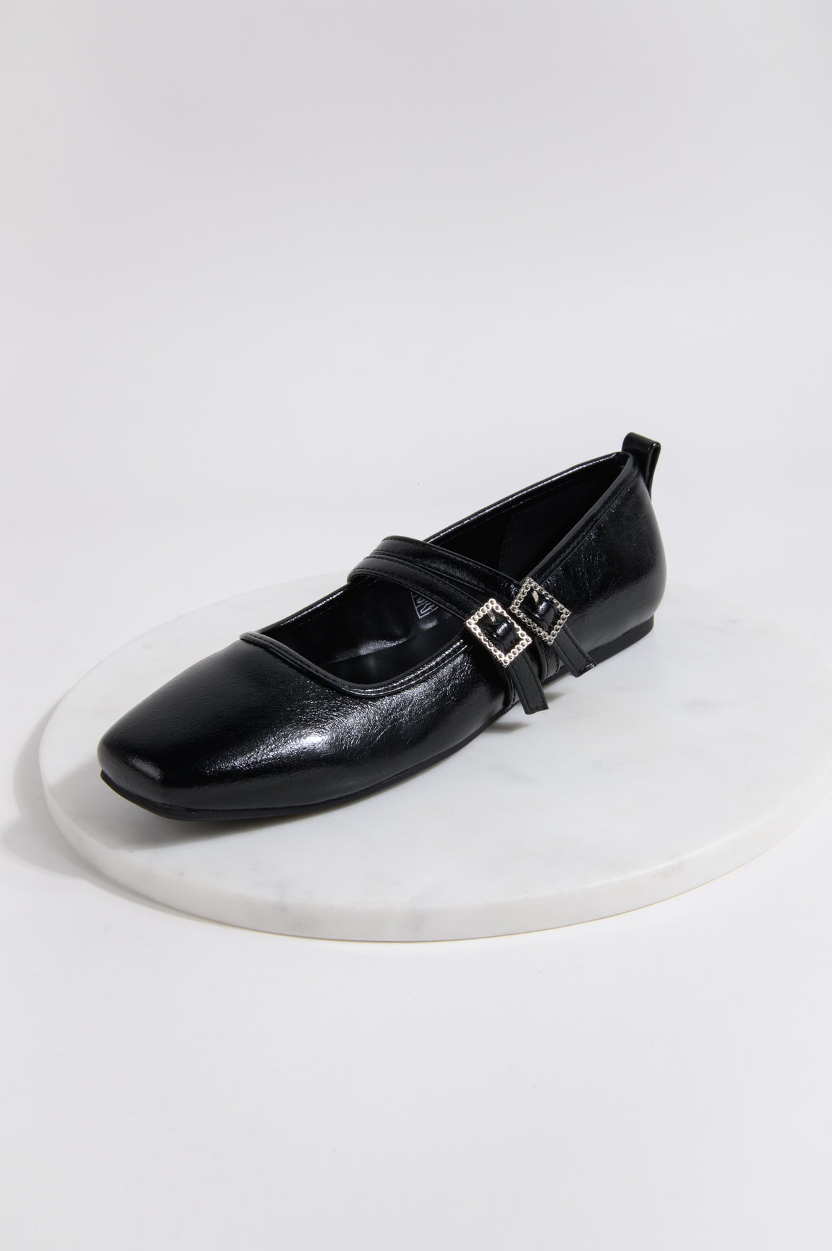 Ballerina aus veganem Leder in Schwarz mit zwei Riemchen