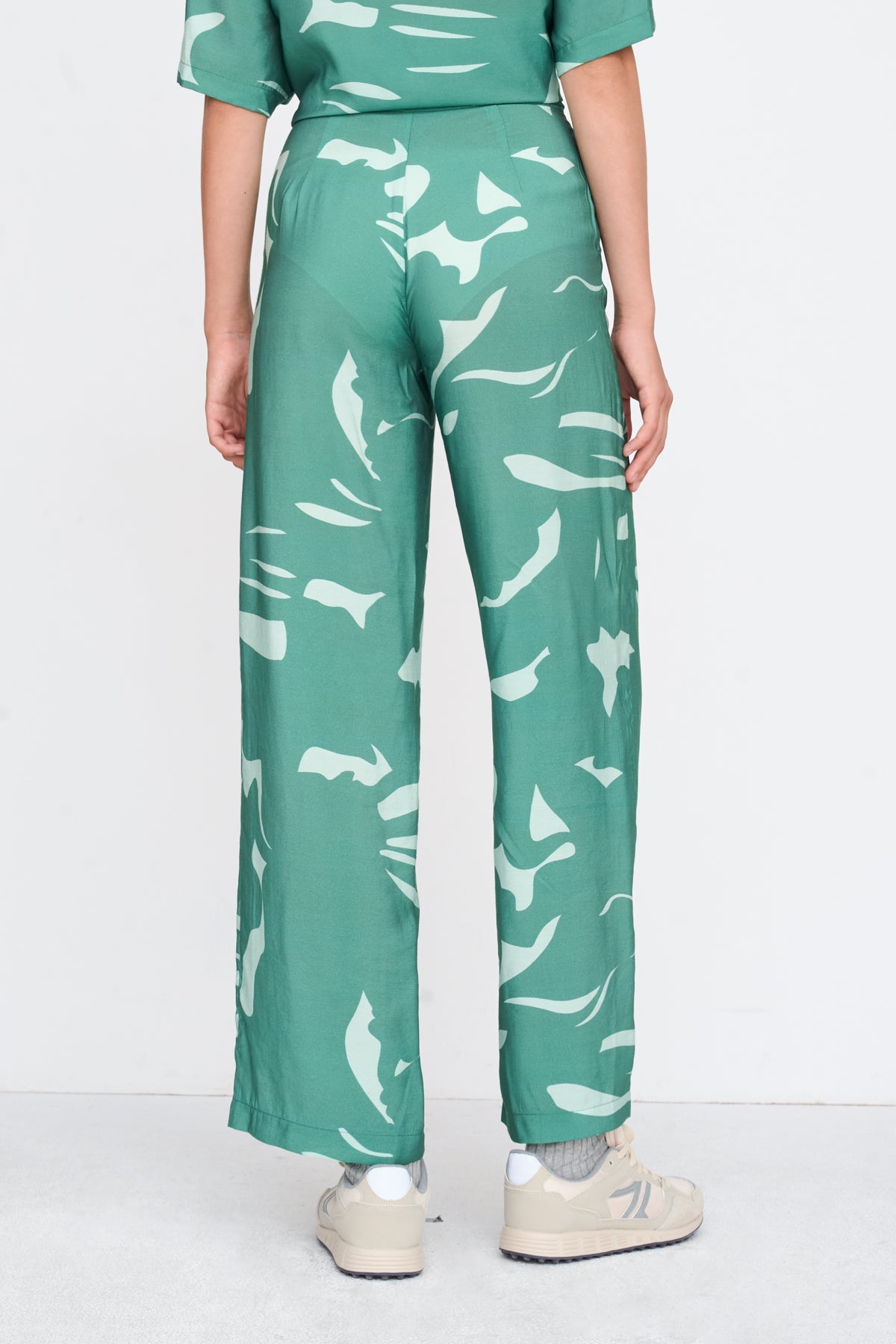 Leichte Hose mit floralem Print in Grüntönen