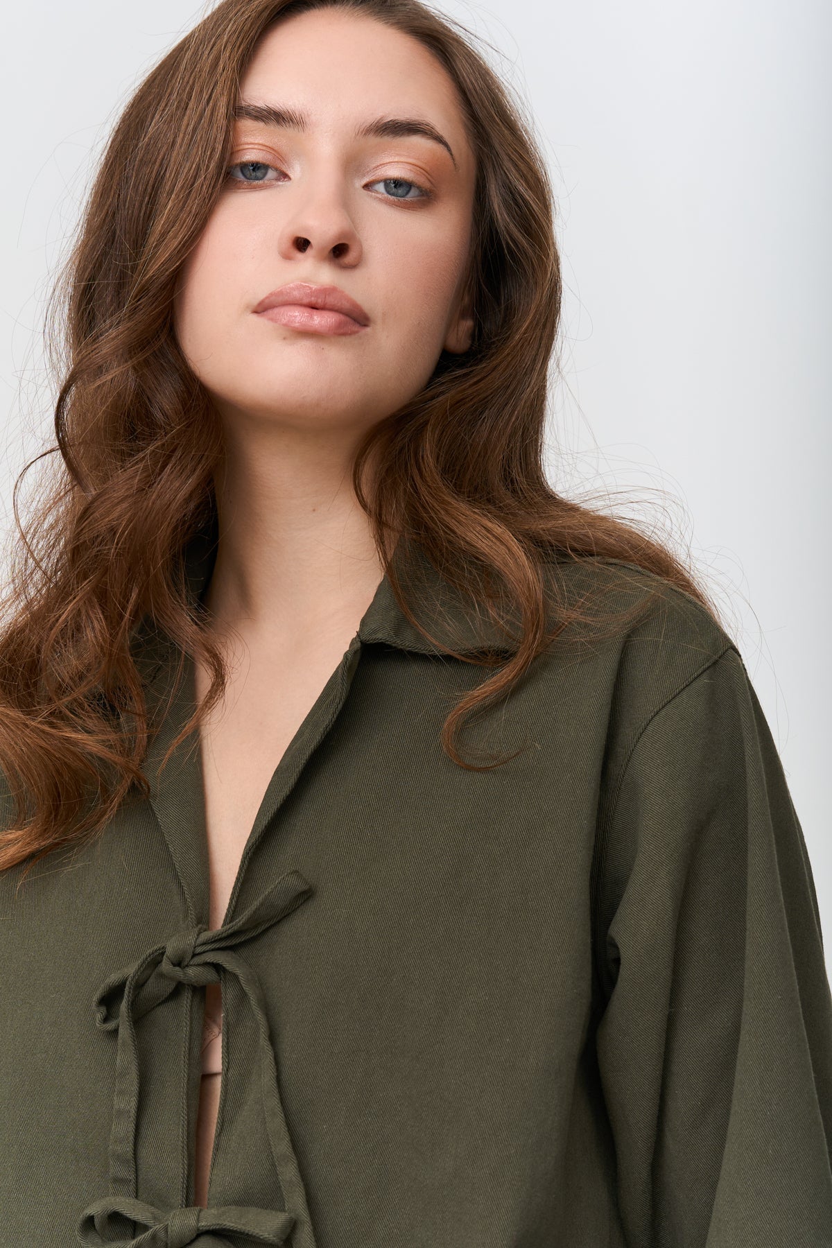 Grüne Jacke mit Schnürungen vorne