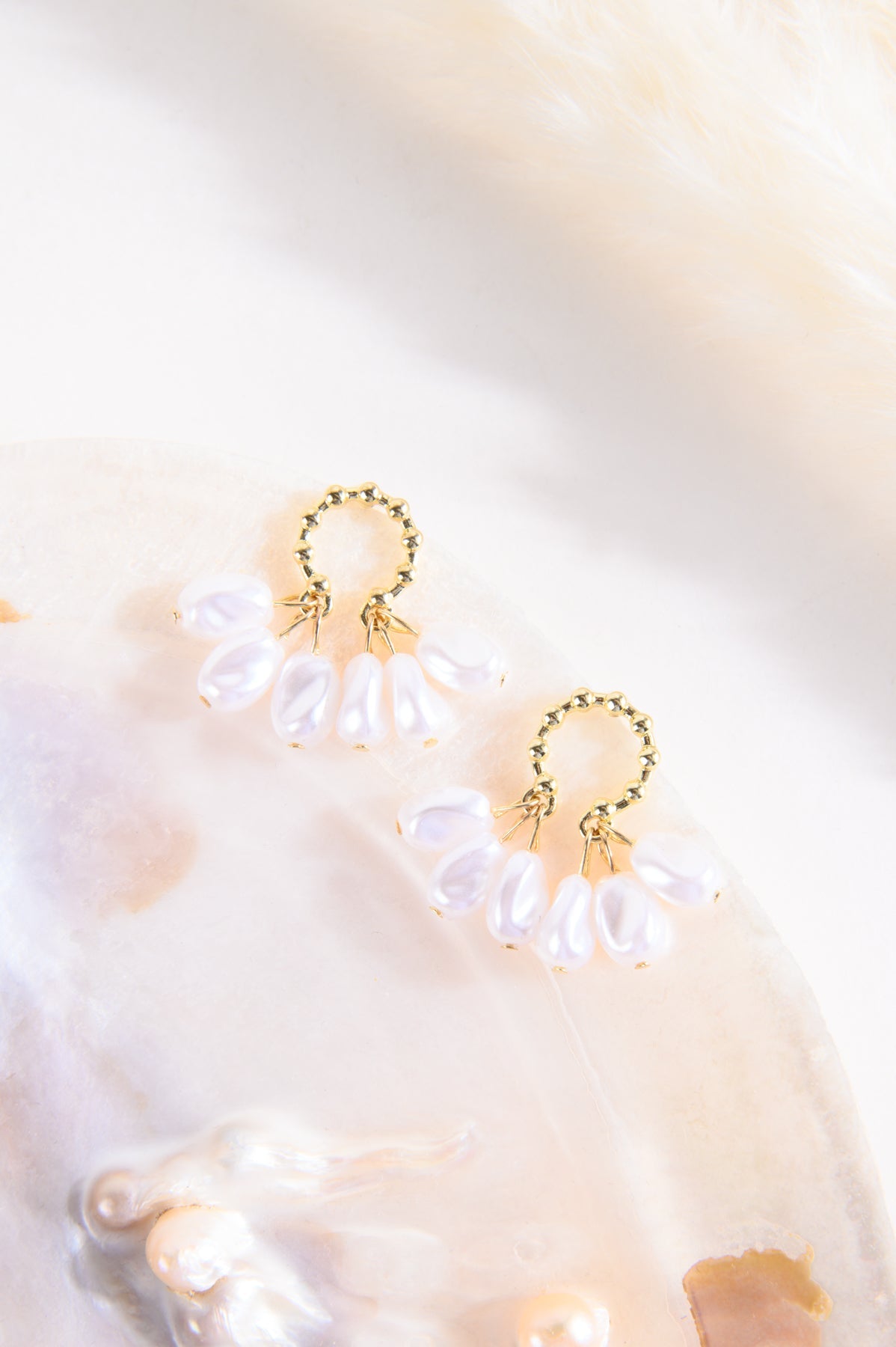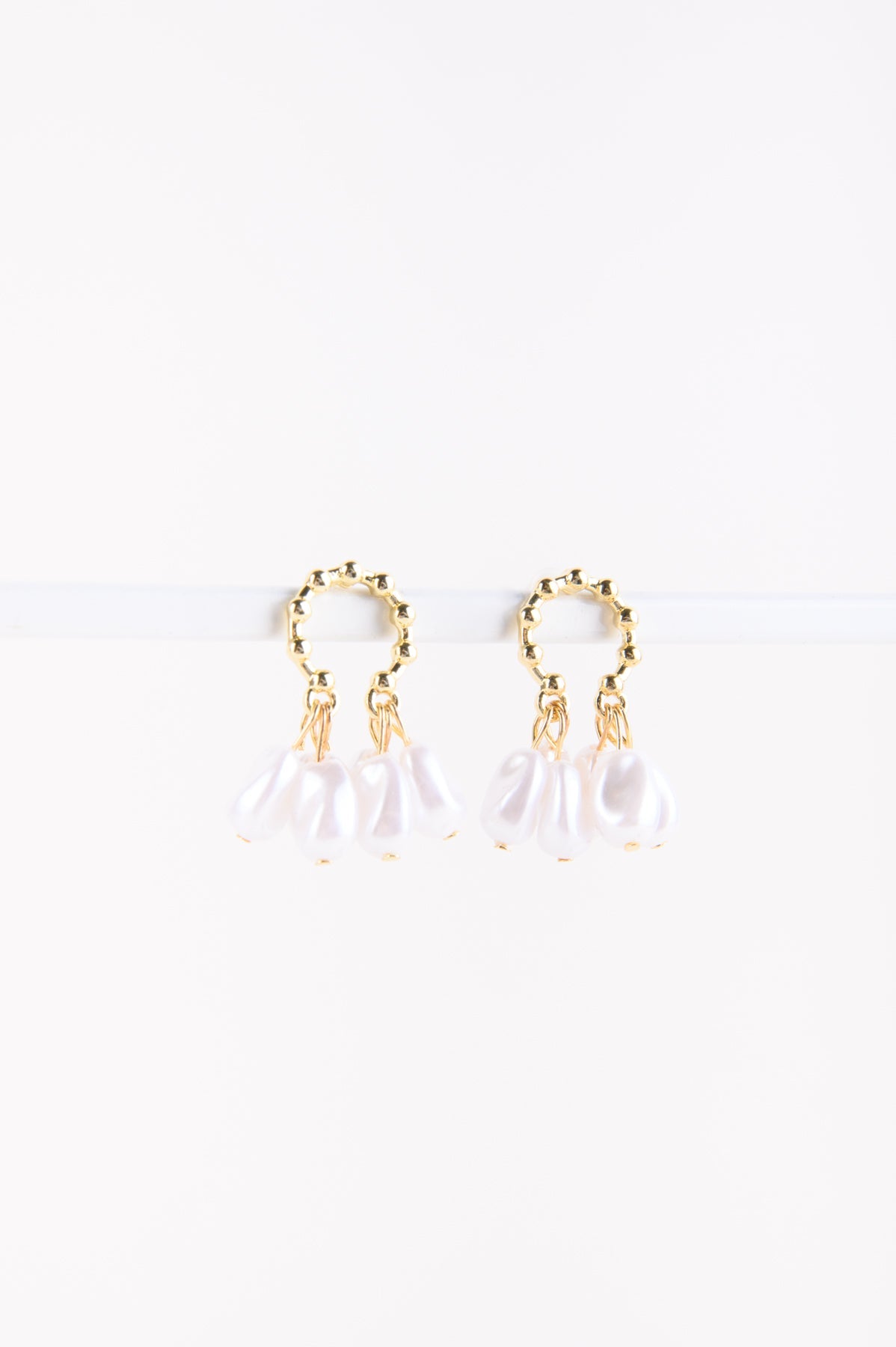 Goldene Ohrringe mit weißen Schmuckperlen