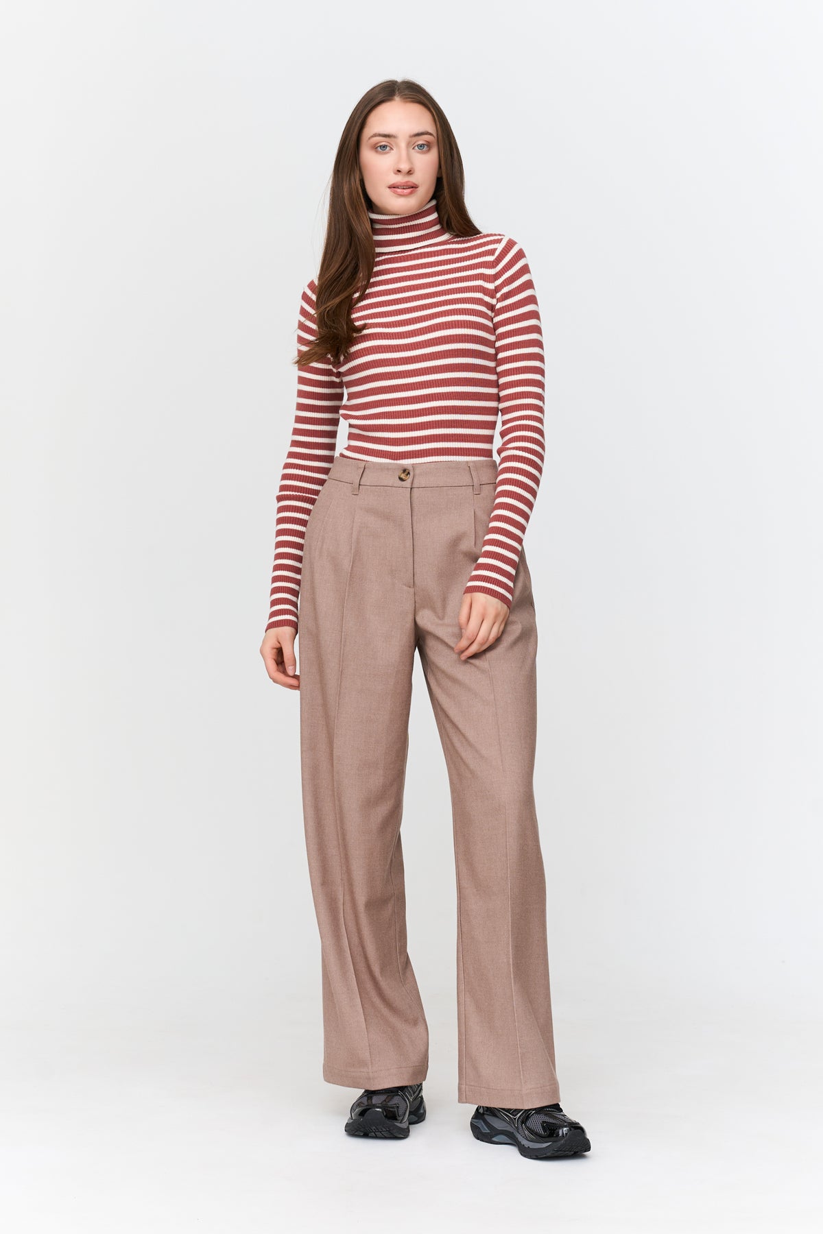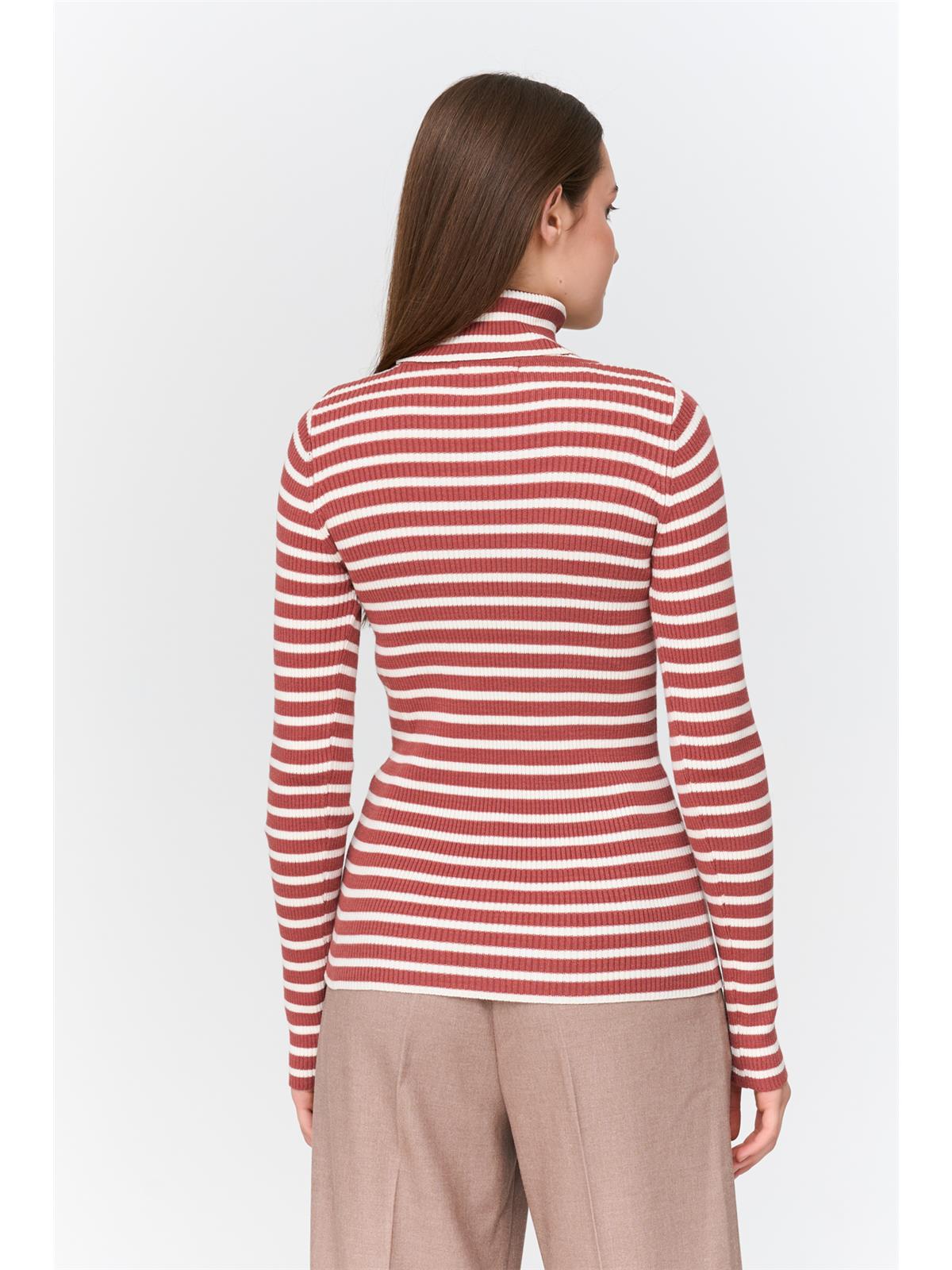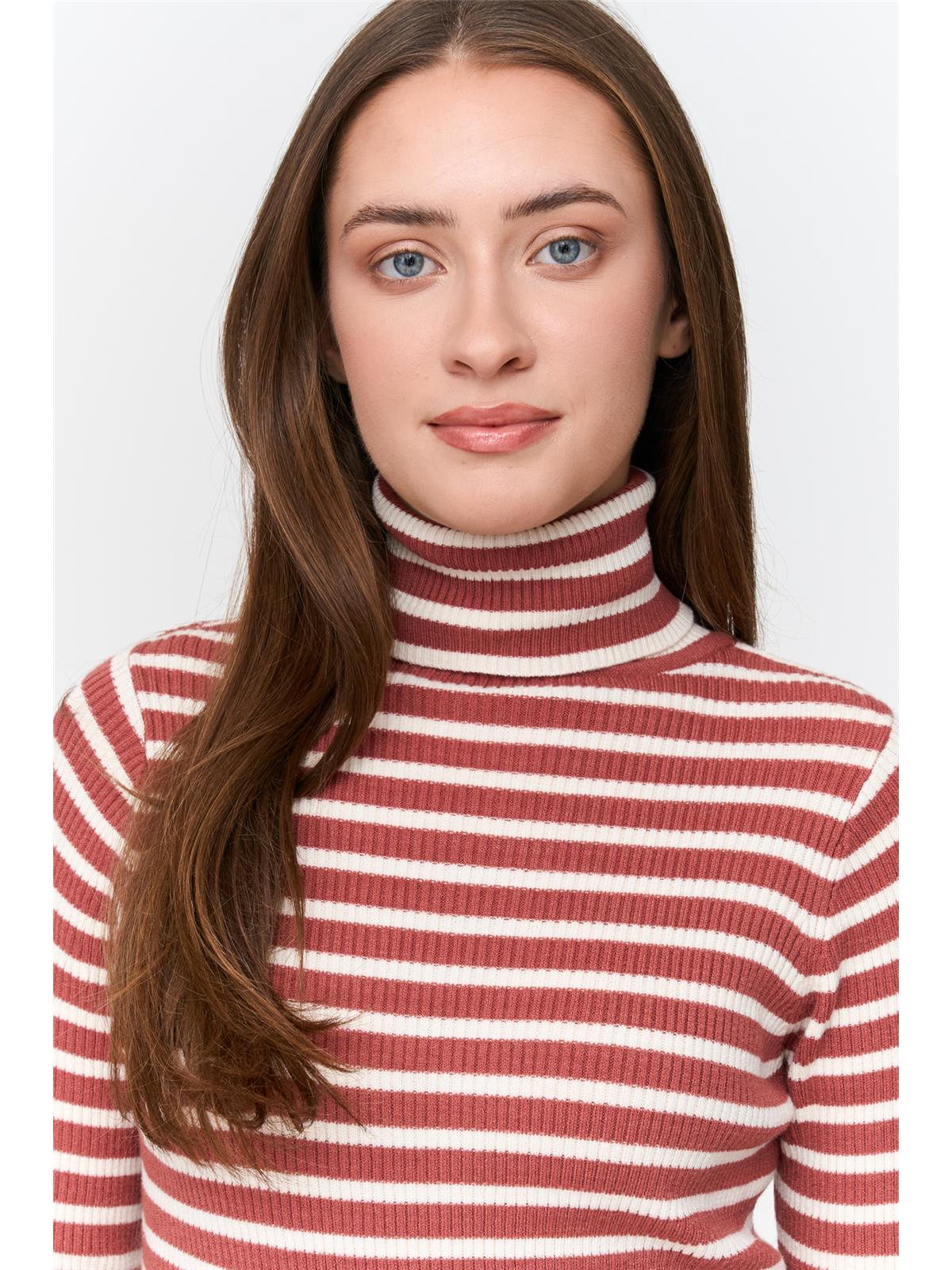 Gestreifter Rollkragenpullover in Rost-Weiß