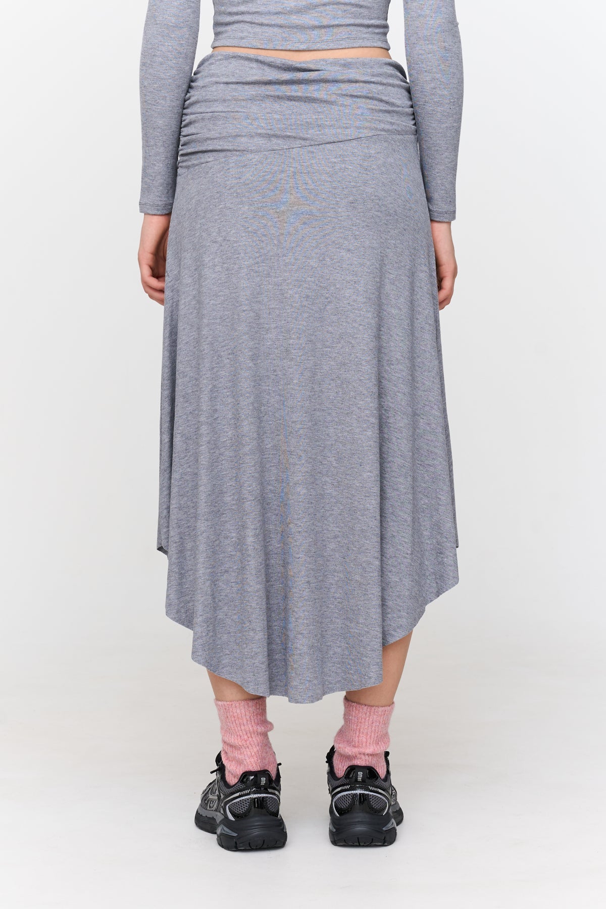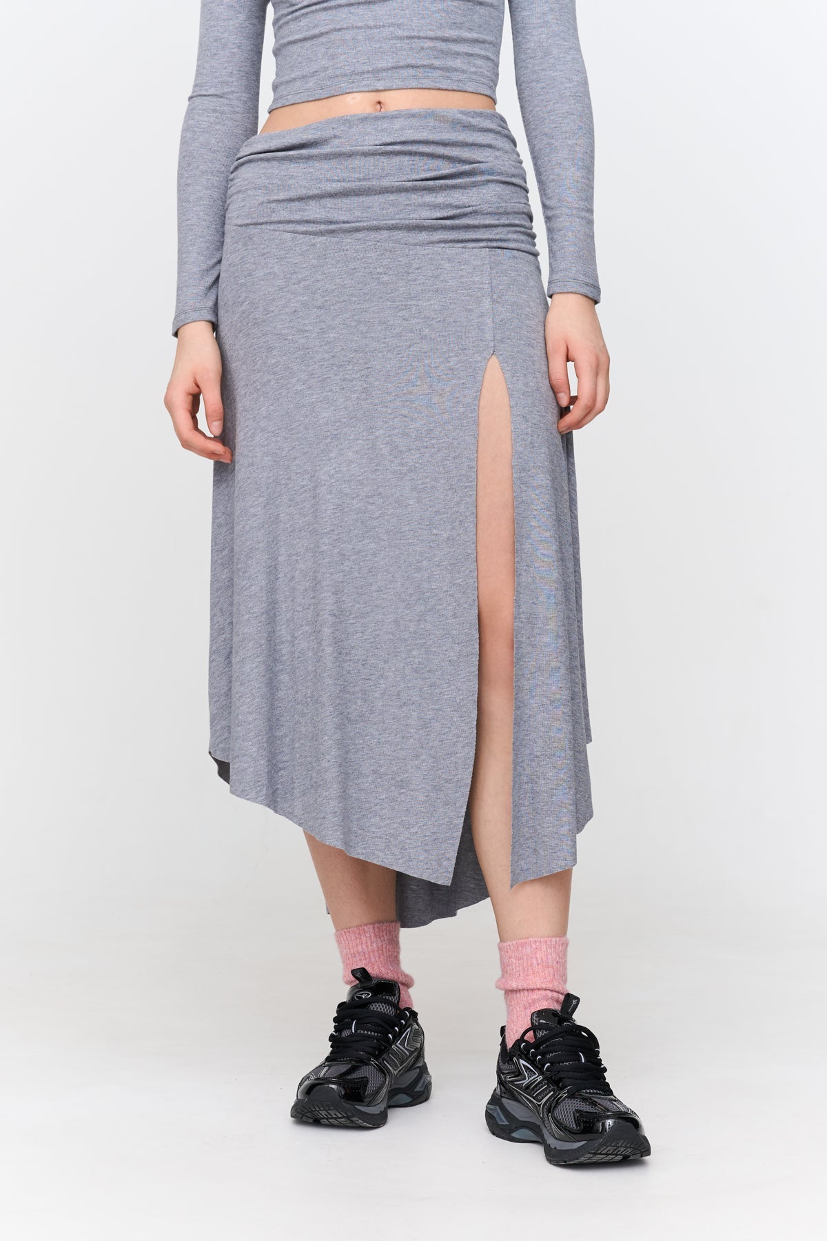 Midi-Rock mit elastischem Bündchen und Schlitz, in Grau