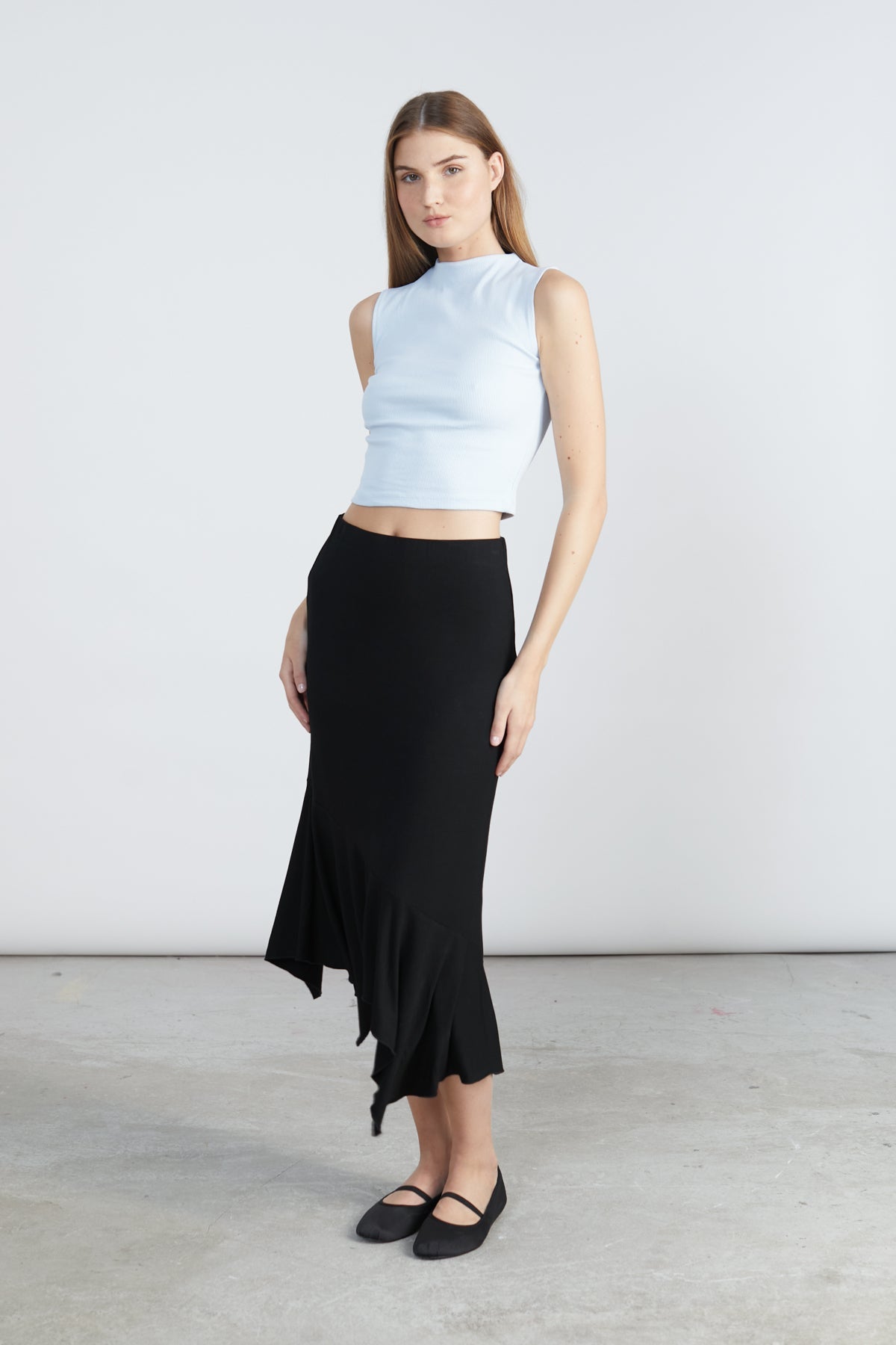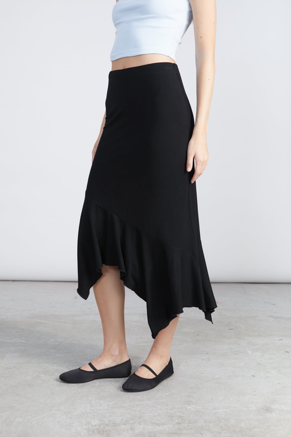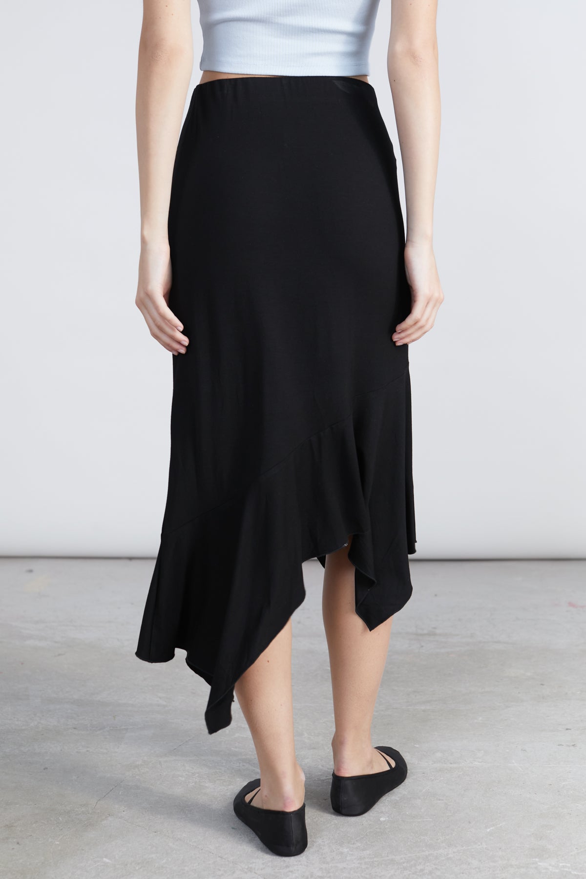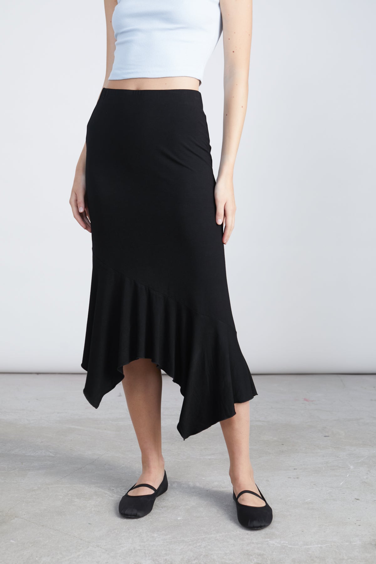 Midi-Rock mit elastischem Bündchen und asymmetrischem Saum