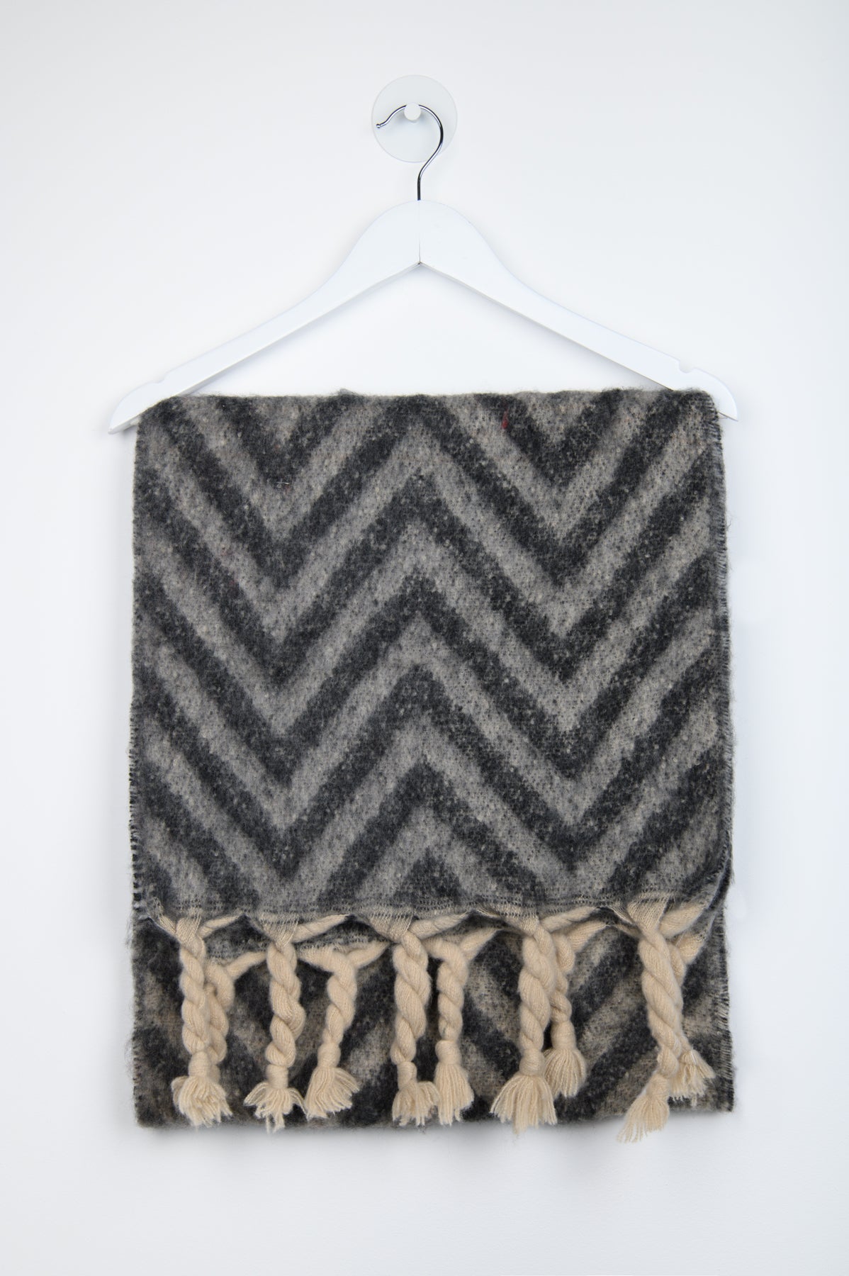 Gefilzter Schal mit grau-schwarzem Muster