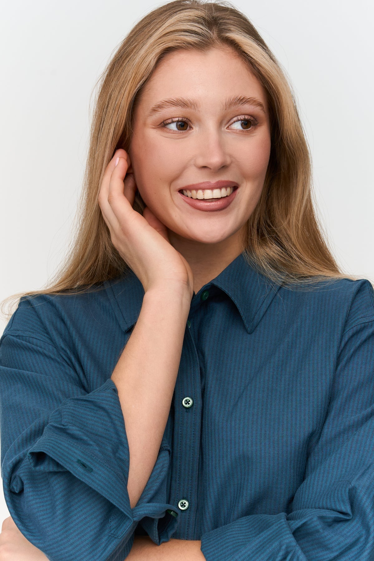 Oversized-Hemd aus gestreiftem Stoff in Petroltönen