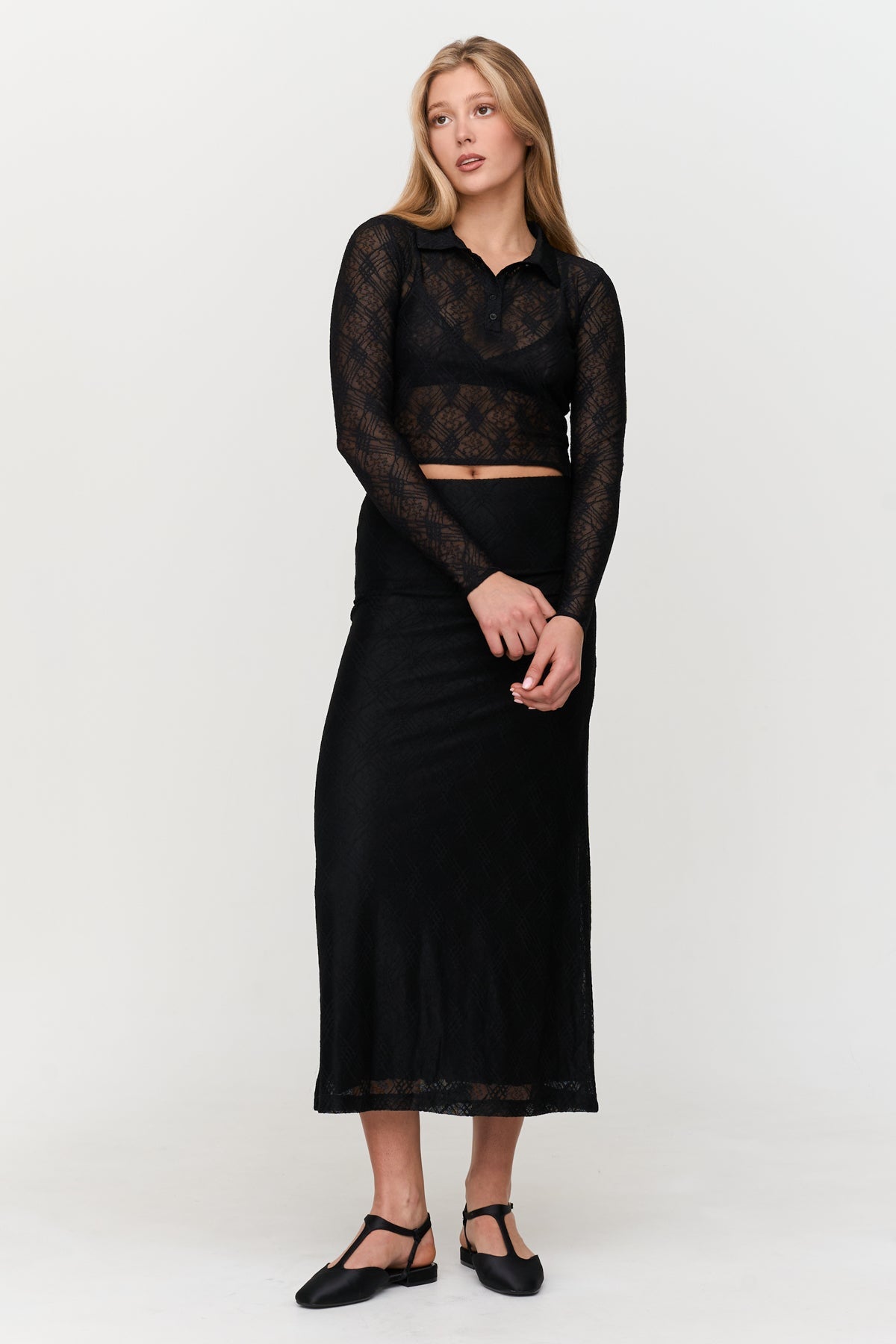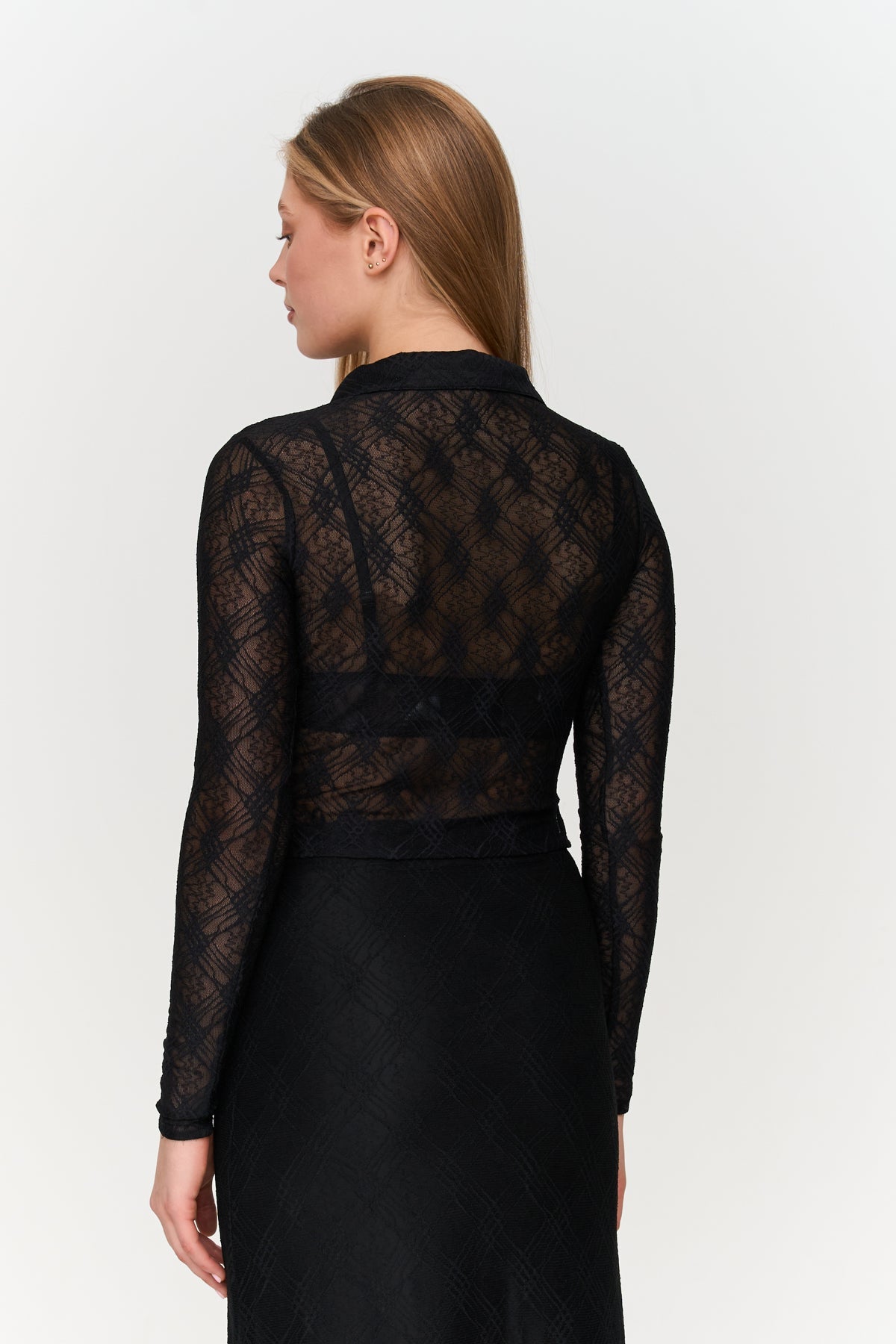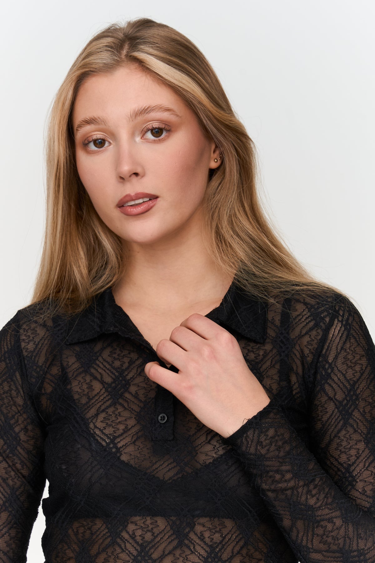 Oberteil mit Hemdkragen aus schwarzem Strukturstoff