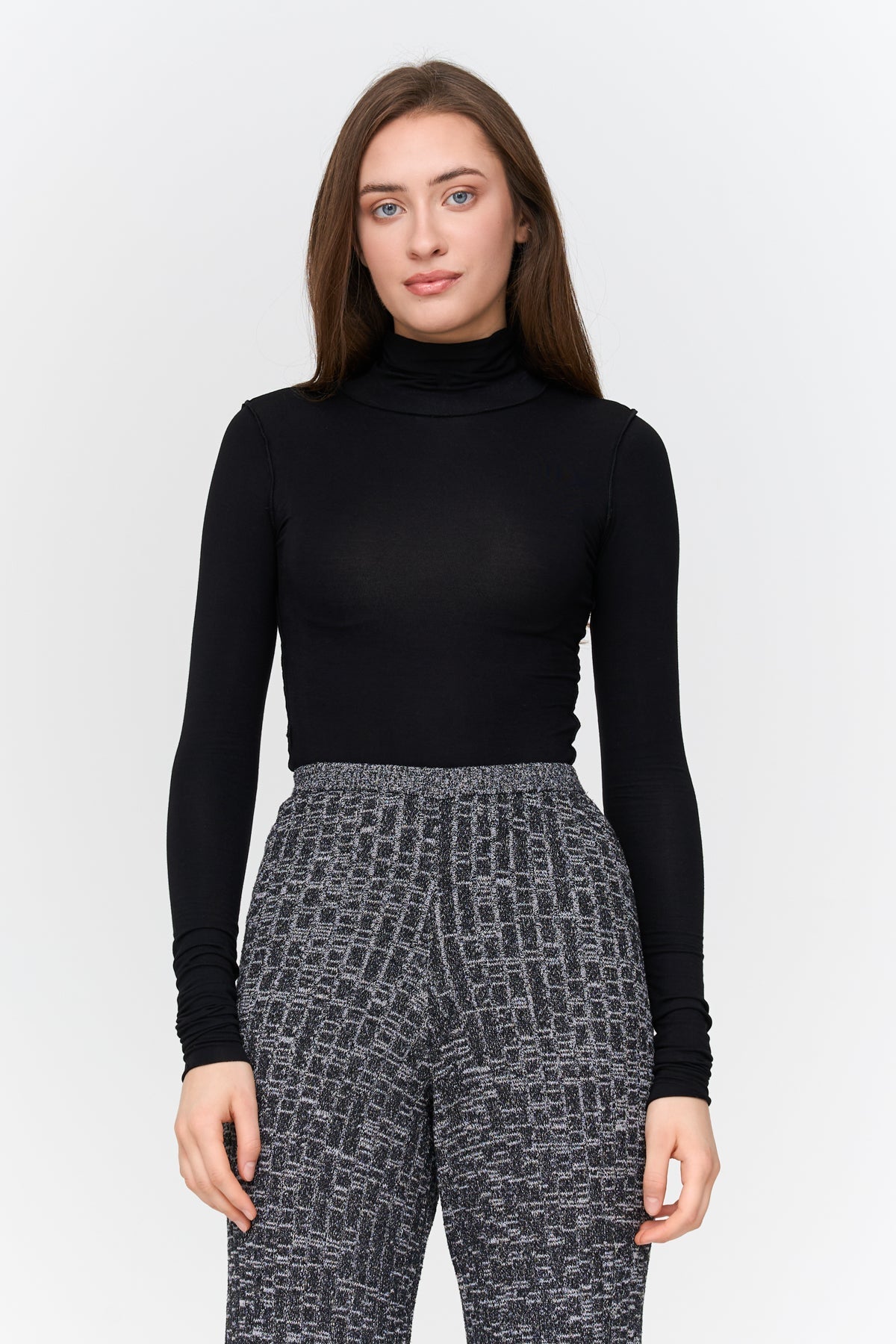 Rollkragen-Pullover mit umgekehrten Nähten in Schwarz