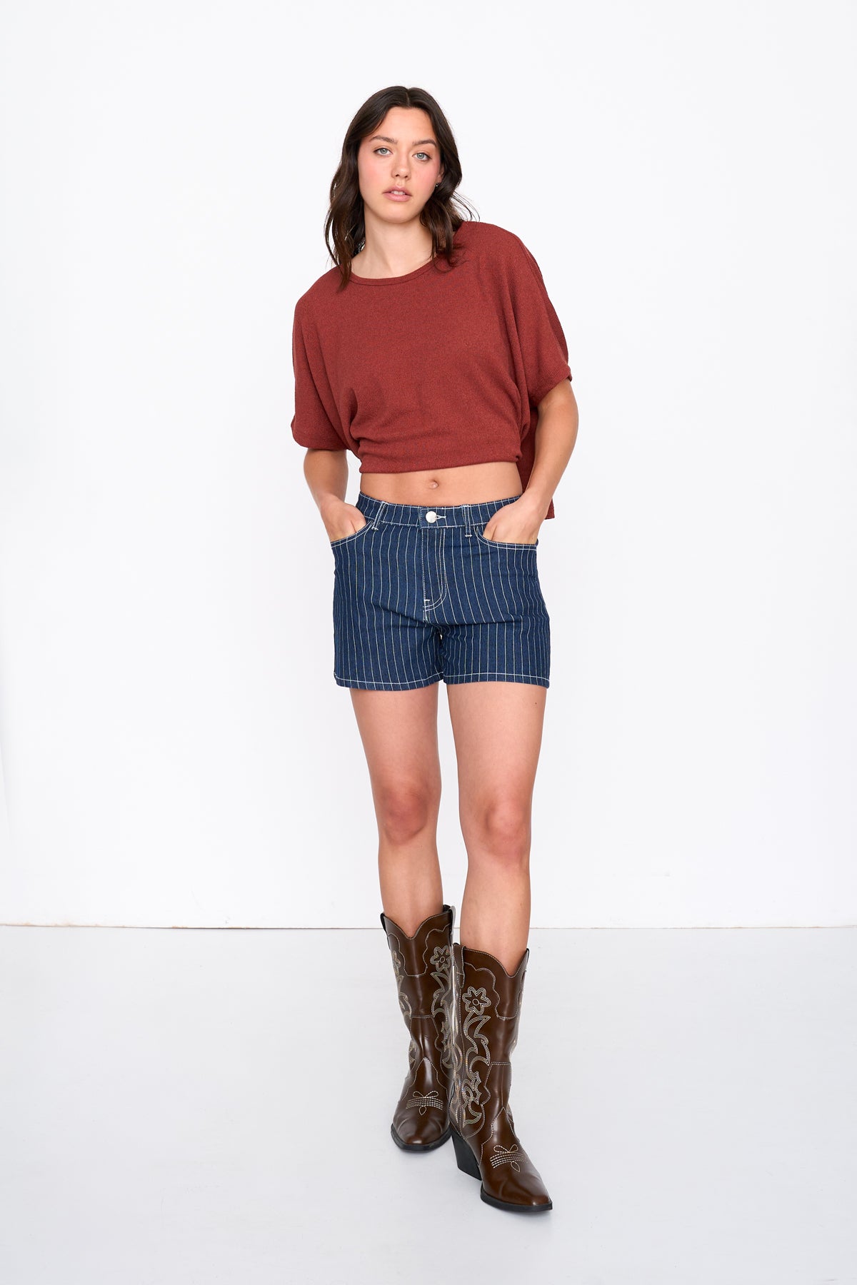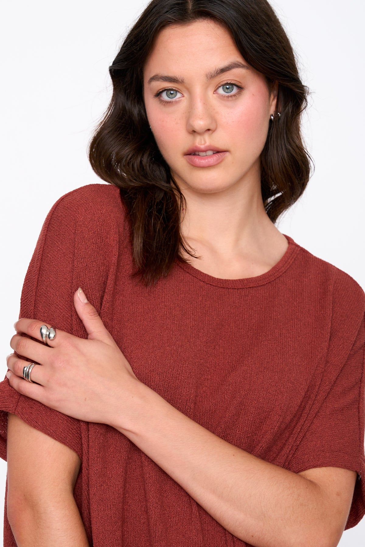 Weit geschnittenes Top aus Strickstoff in Rost