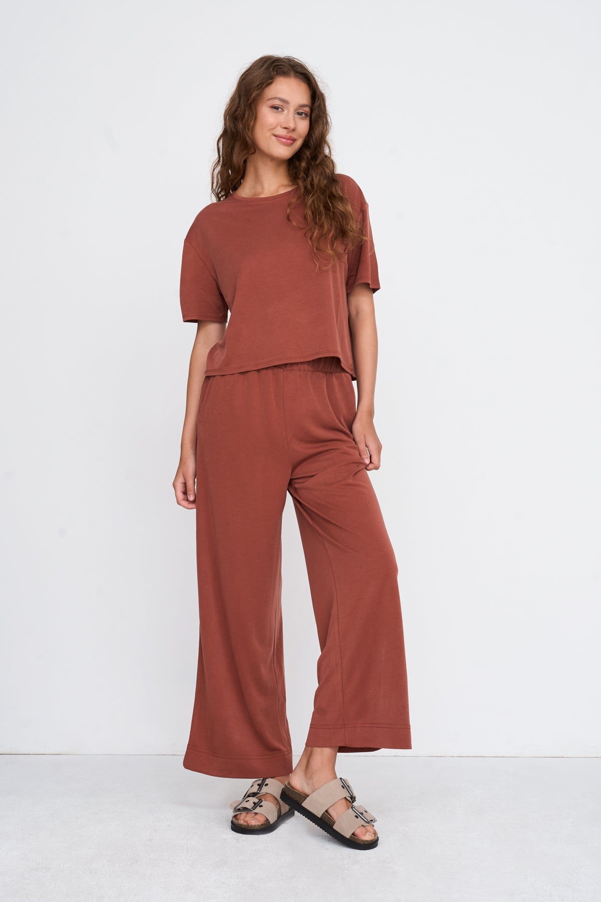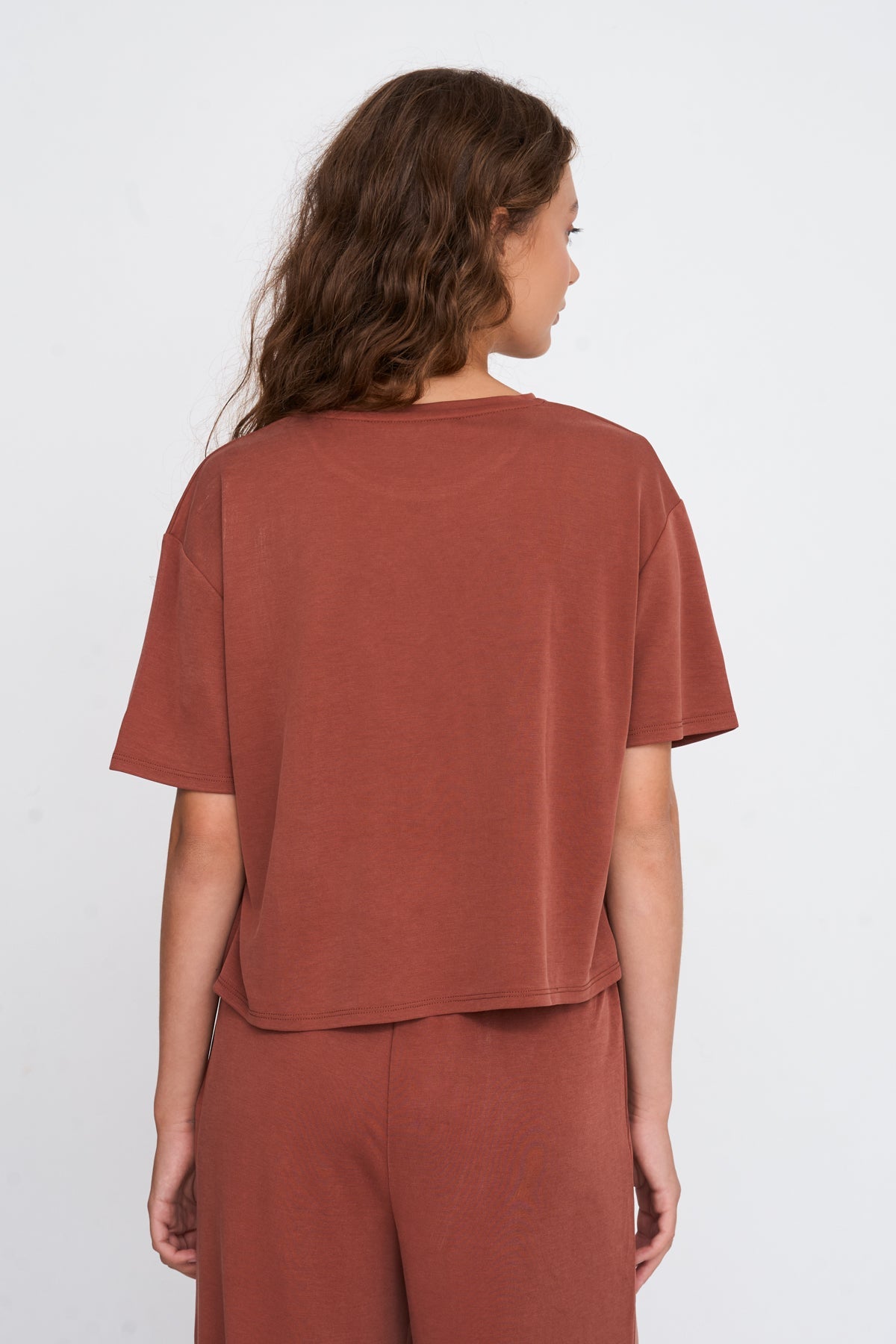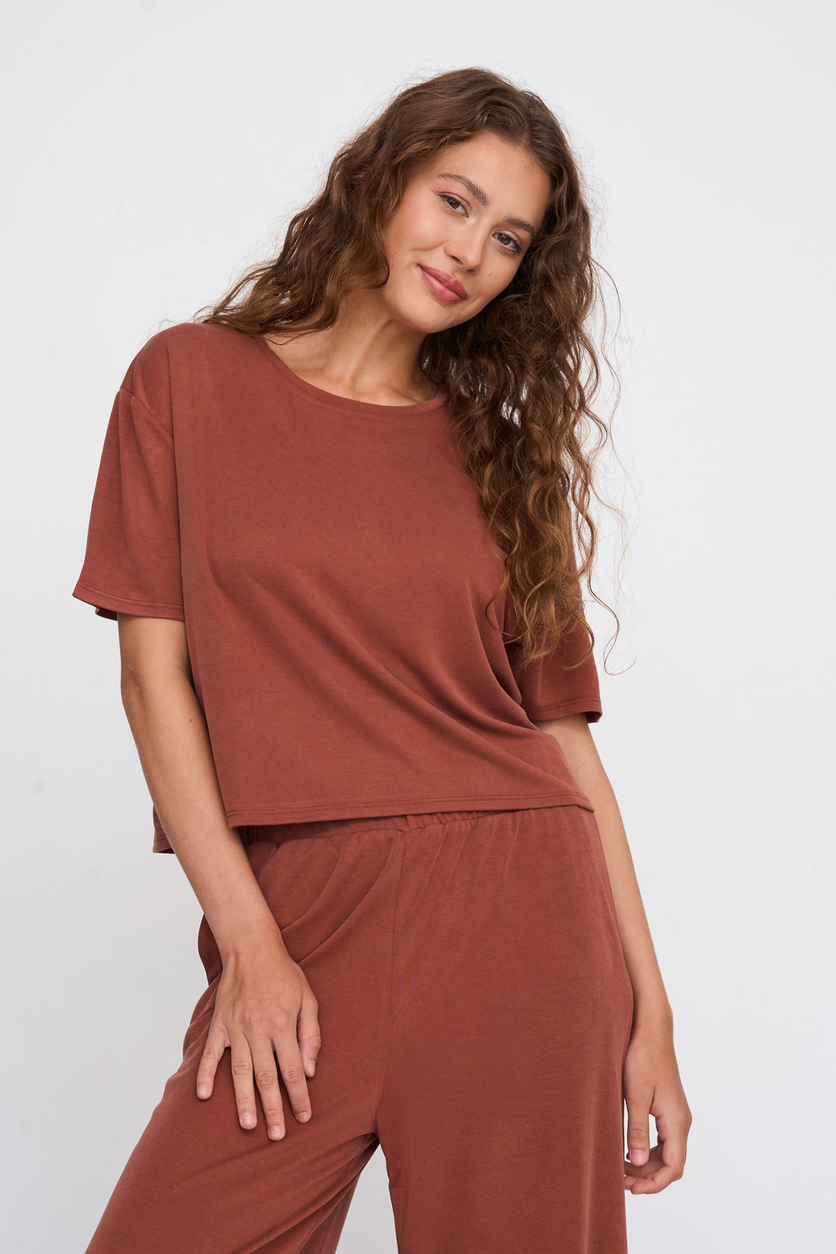 Weites T-Shirt aus weichem elastischem Stoff in Rost