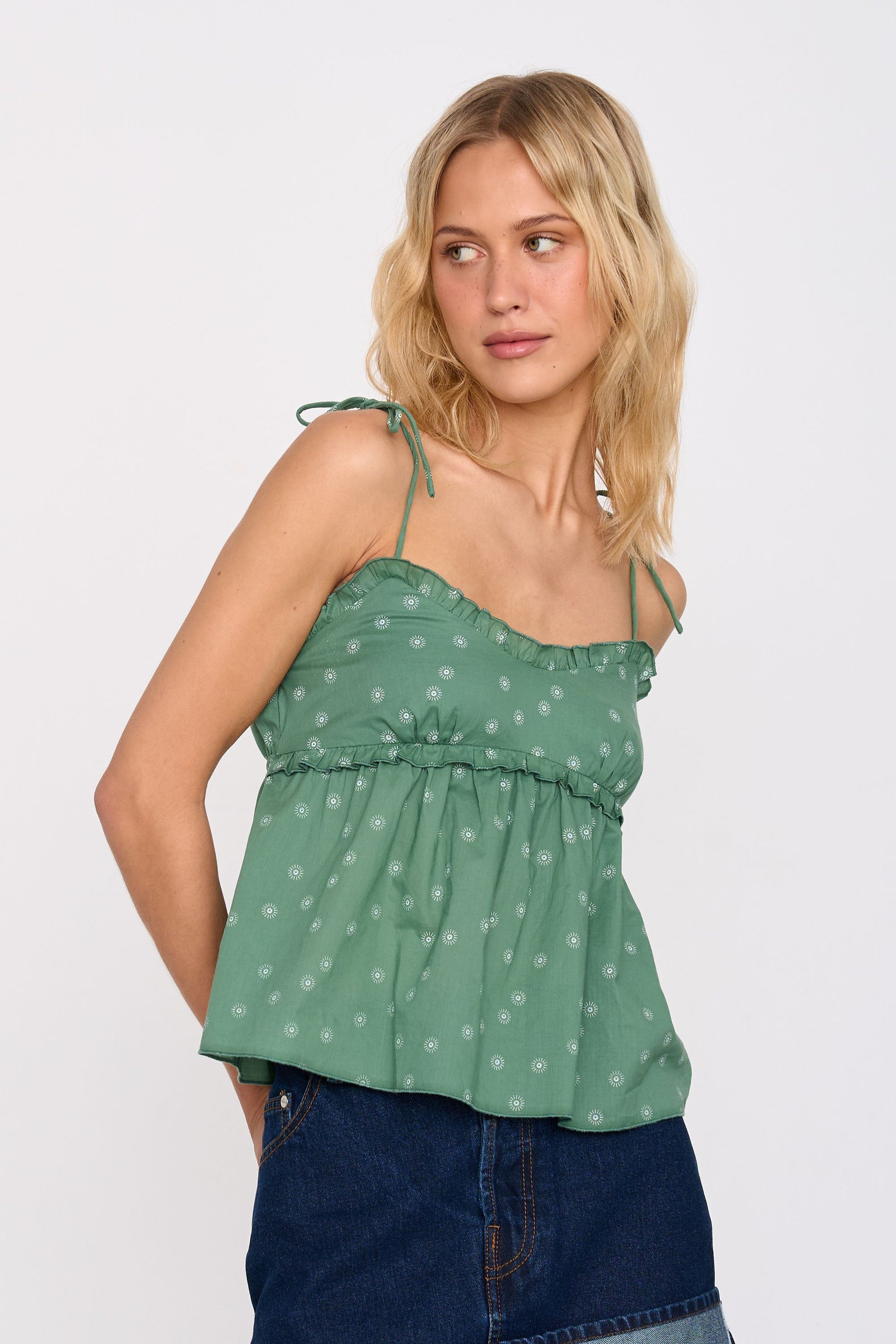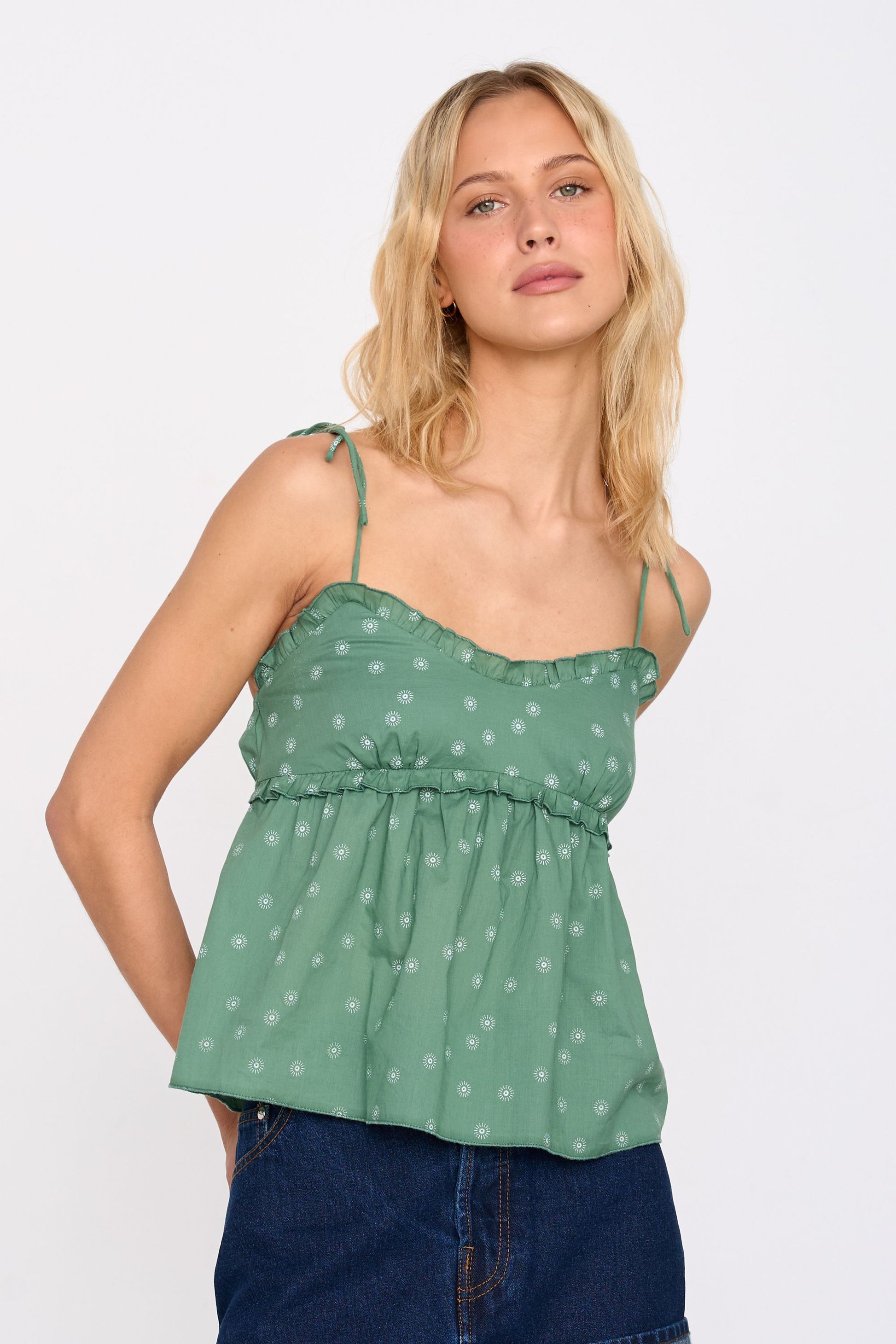 Top in Grün mit kleinen Stickereien